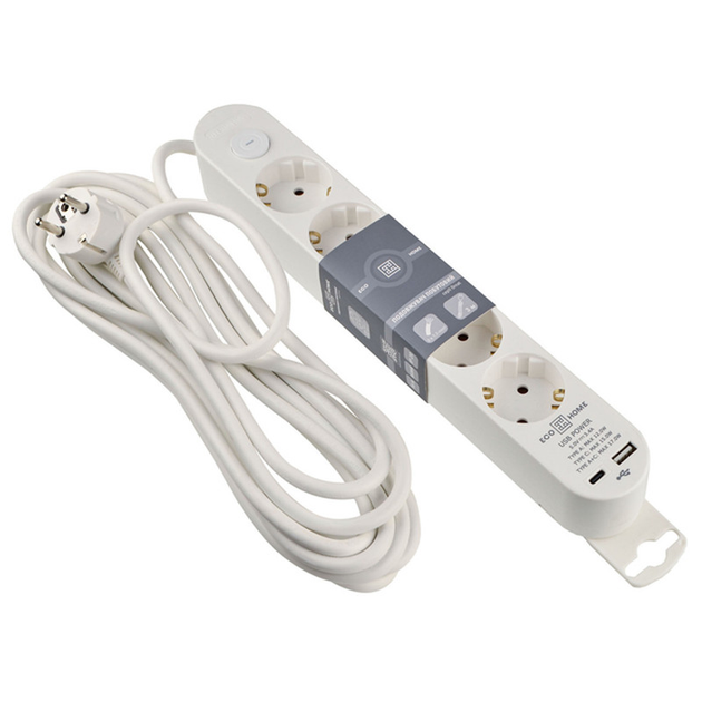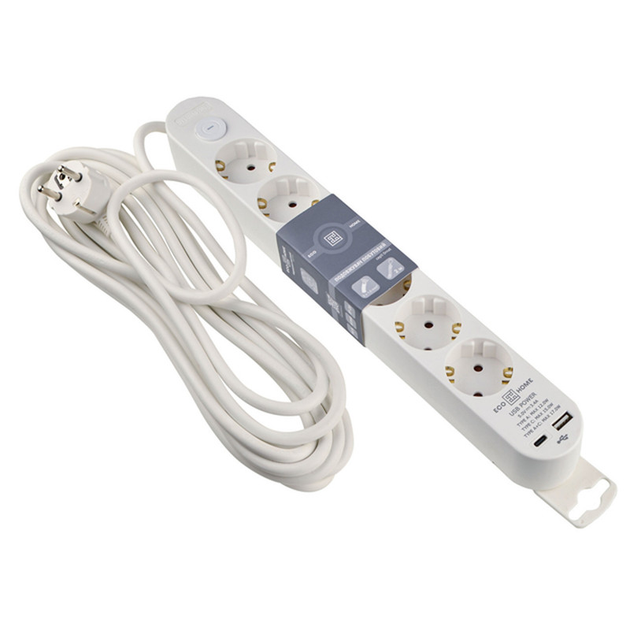 Мережевий фільтр-подовжувач 4 гнізда 5м з з/к USB+Type C з вимикачем [ECO019001006] Ornat АСКО