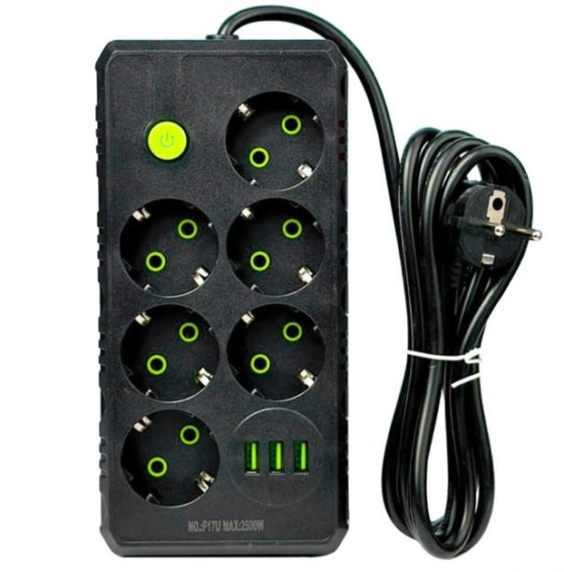Мережевий фільтр подовжувач 6 розеток + 3USB на 2 метри UA Power F17U чорний