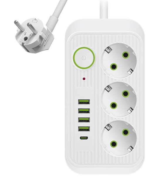 Подовжувач мережі Power Socket J02 на 4 розетки + 3 USB 3.4A і 1 Type-C Білий