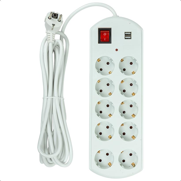 Мережевий фільтр для офісу 10 розеток, 2xUSB PowerPlant