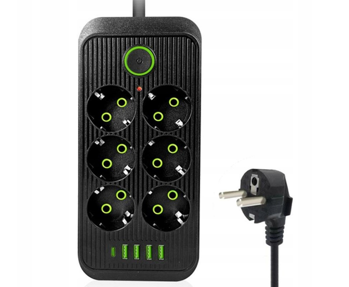 Підовжувач мережевий UA Power F06U, 4USB, Type-C, 6 розеток, 6 м, чорний