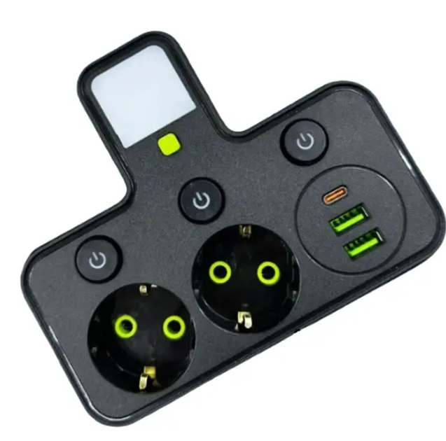 Трійник мережевий HG-275 2500Вт +2USB +TupeC чорний з підсвіткою