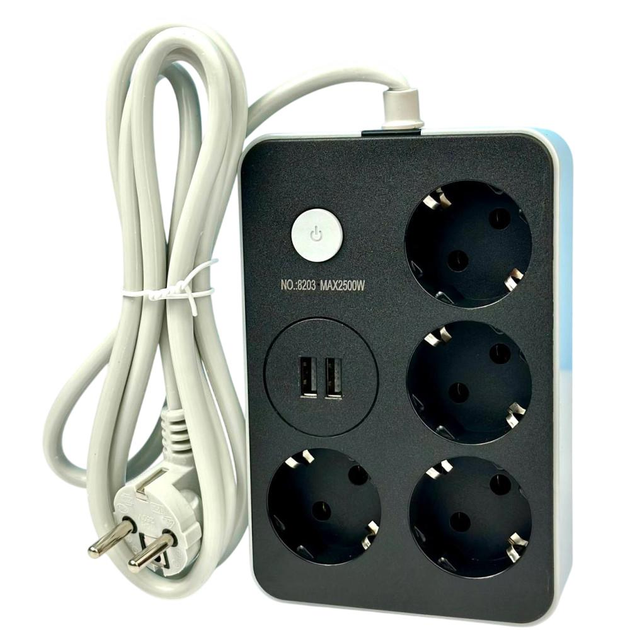 Підовжувач мережевий Power Socket 8203 на 4 розетки 3 USB Перенесення 2м