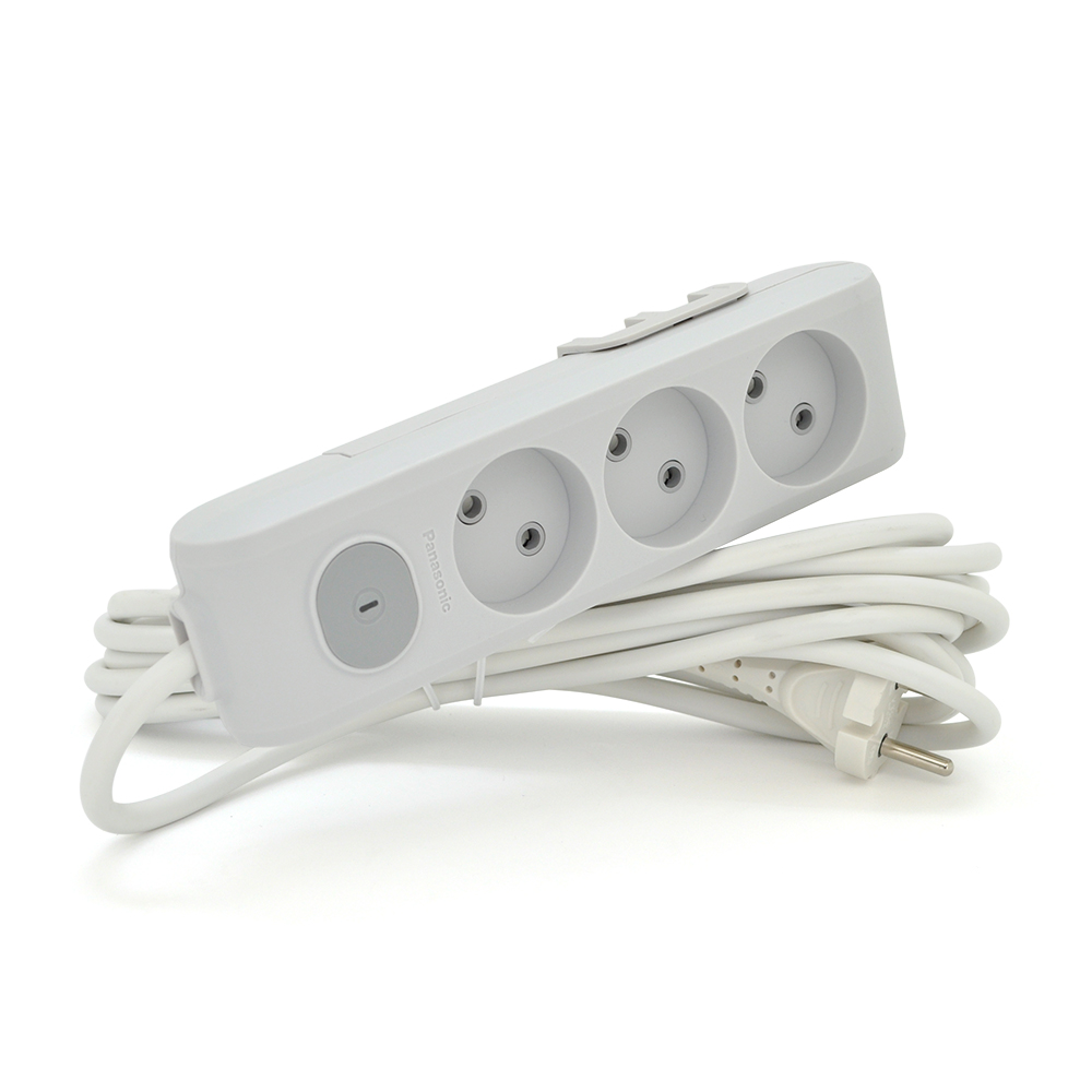 Подовжувач Panasonic X-tendia із заземленням 3 гнізда, 5 м, з захистними шторками, сірий Y-23046