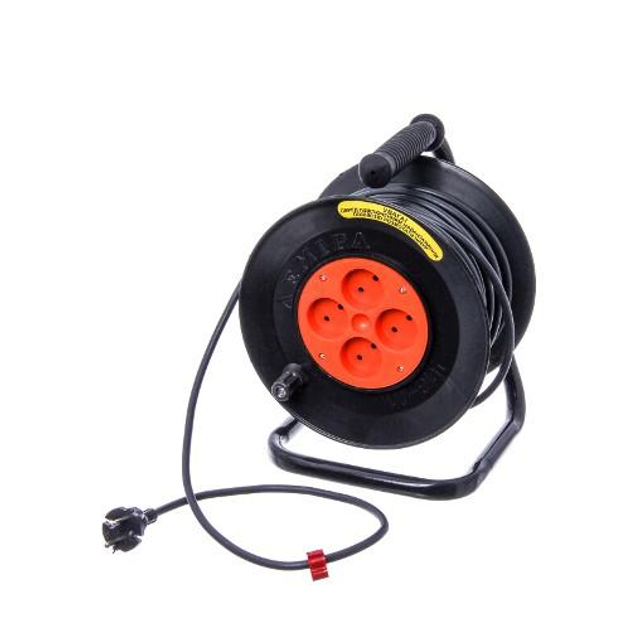 Подовжувач на котушці 40 метрів (ПВС 3х1,5) з заземленням (4 гнізда)