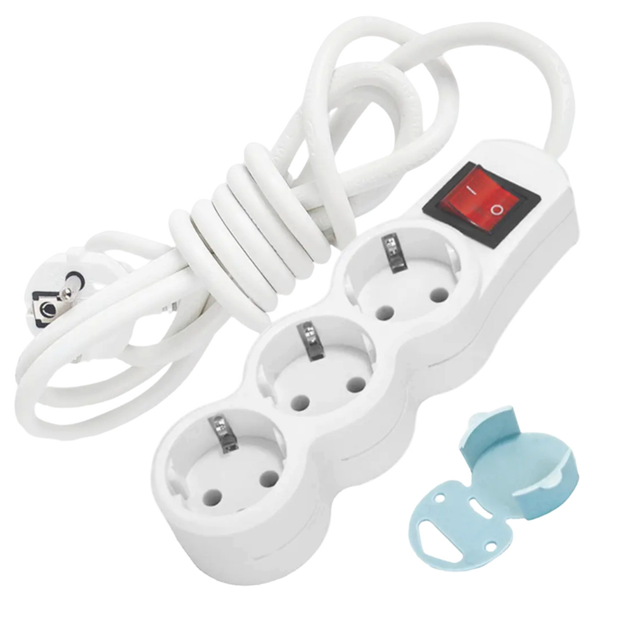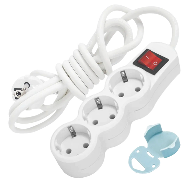 Подовжувач на три розетки Marso 3м із заземленням і вимикачем 10А білий IP20