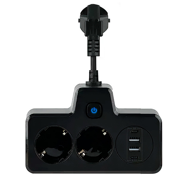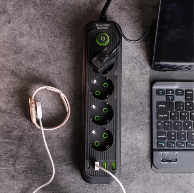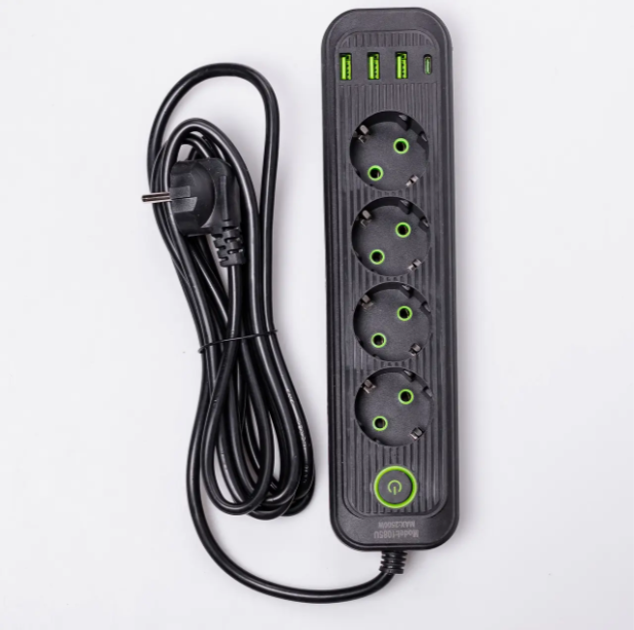 Подовжувач мережевий Yiwu HP-5-13MF 4 розетки + 3 USB + 1 Type-C Чорний Код: HP-5-13MF