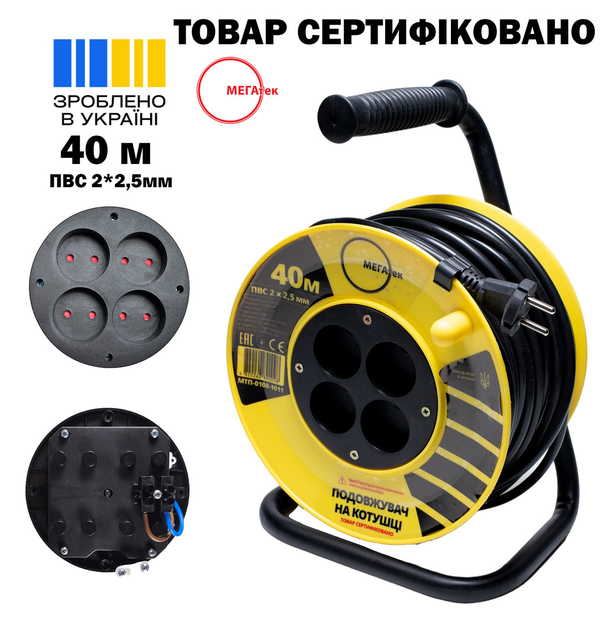 Подовжувач на котушці Мегатек 40м б/з ПВС 2*2,5мм МТП-0108-1011