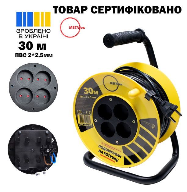 Подовжувач на котушці Мегатек 30м б/з ПВС 2*2,5мм МТП-0108-1010