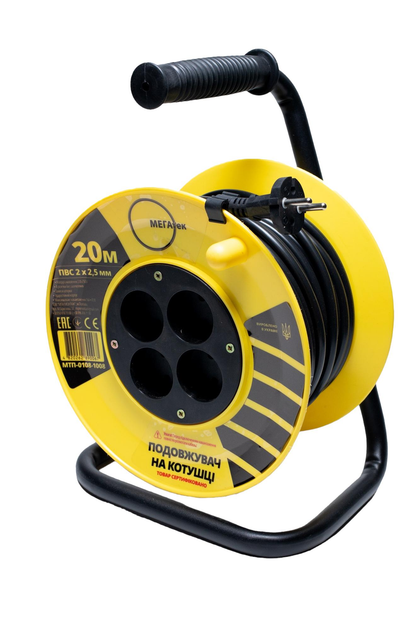 Подовжувач на котушці Мегатек 20м б/з ПВС 2*2,5мм МТП-0108-1008
