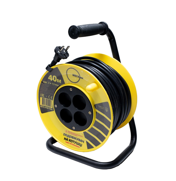Подовжувач на котушці Мегатек 40м б/з ПВС 2*1,5мм МТП-0108-1006