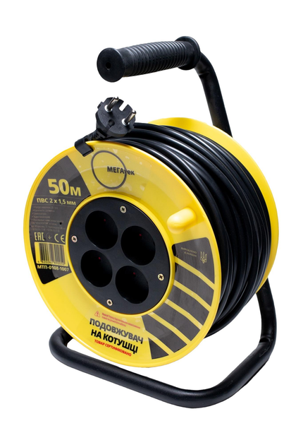Подовжувач на котушці Мегатек 50м б/з ПВС 2*1,5мм МТП-0108-1007