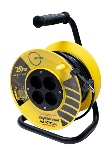 Подовжувач на котушці Мегатек 20м б/з ПВС 2*1,5мм МТП-0108-1003
