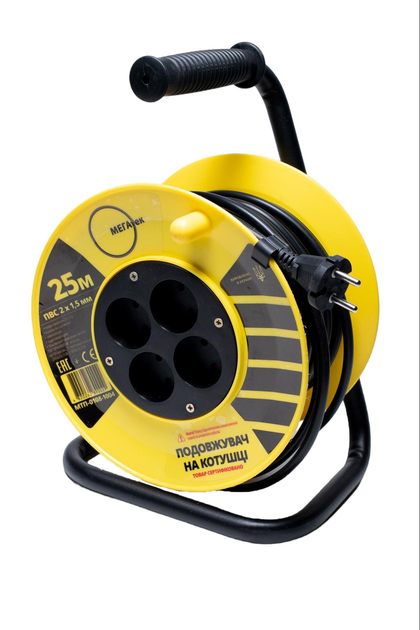 Подовжувач на котушці Мегатек 25м б/з ПВС 2*1,5мм МТП-0108-1004
