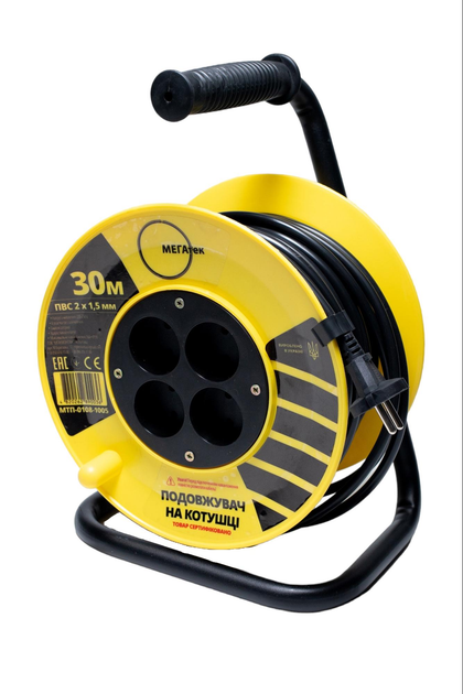 Подовжувач на котушці Мегатек 30м б/з ПВС 2*1,5мм МТП-0108-1005