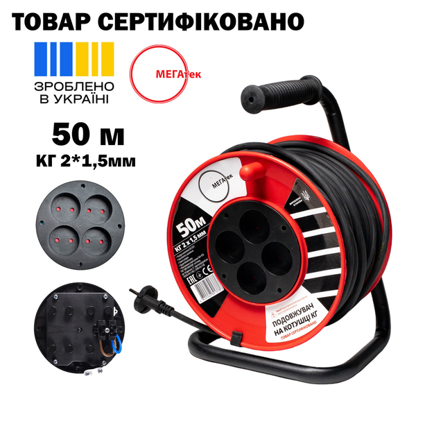 Подовжувач на котушці МЕГАтек 50м КГ 2*1,5мм МТП-0108-1048