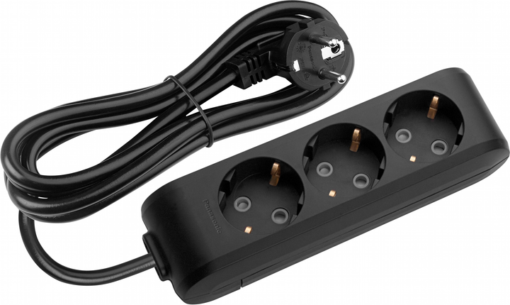 Подовжувач Panasonic X-tendia із заземленням 3 гнізда, 3 м, із захисними шторками, чорний