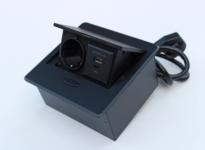 Настільна розетка 1R+USB+Type-C чорна