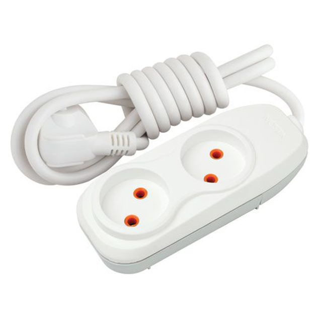 Подовжувач на дві розетки Mutlusan 2м без заземлення 10А білий IP20