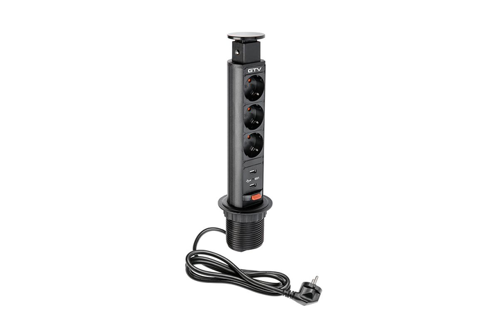 Подовжувач врізний в стіл GTV AE-BPW3S60U-20, 60мм, 3 x гнізда SCHUCKO, 2xUSB 2,1A 5V, чорний - AE-BPW3S60U-20