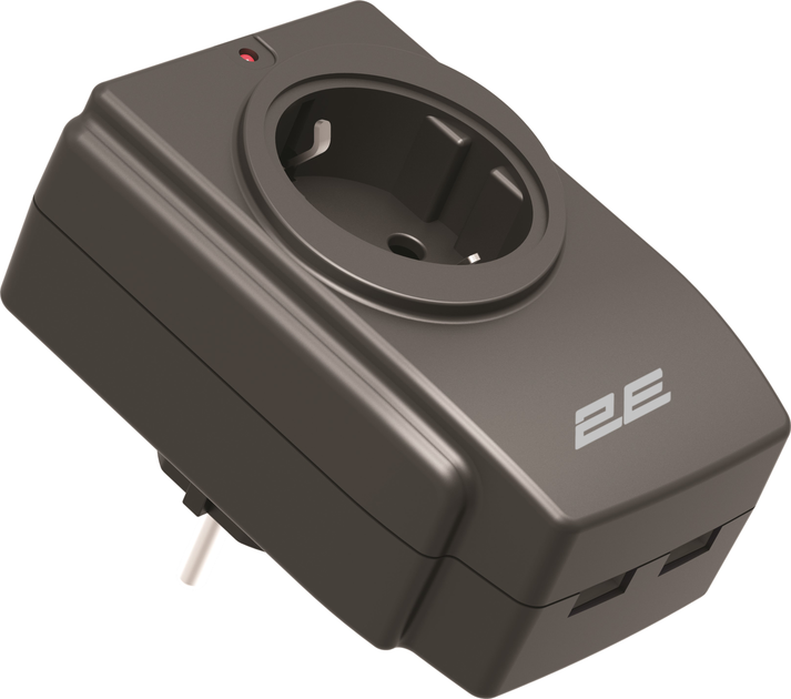 Мережевий фільтр-адаптер 2E AD120U 1xТипF, 16A, 2xUSB-A Чорний (2E-AD120U)