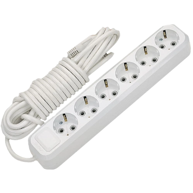 Мережевий подовжувач з кнопкою та заземленням Makel 6 розеток та кабель 5м Білий