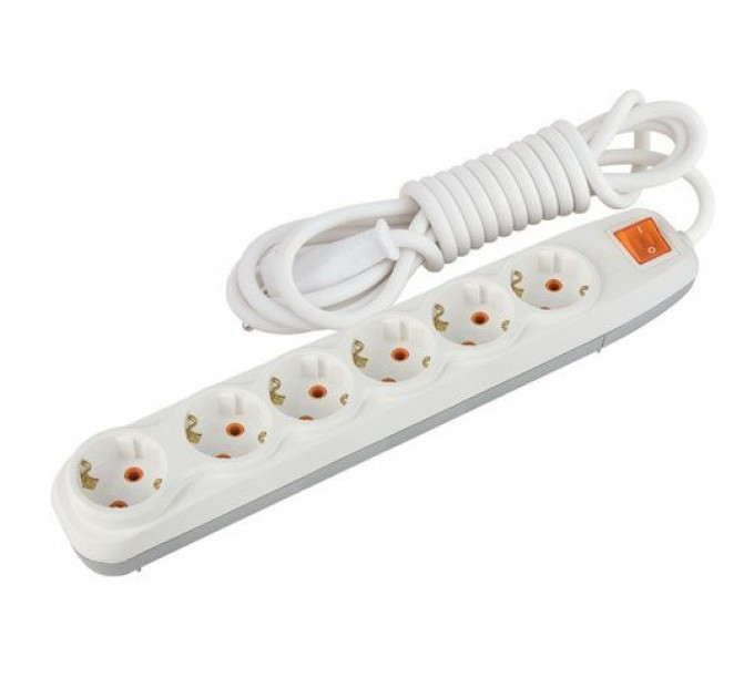 Мережевий подовжувач з кнопкою та заземленням Makel 6 розетки та кабель 2м Білий