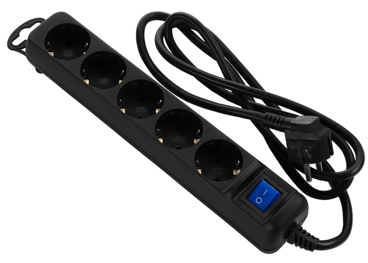 Сітковий підовжувач 2Е 5XSchuko з вимикачем, 3G*1.5мм2, 3м, black