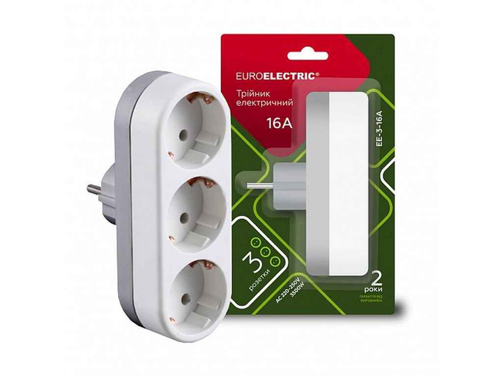 Розгалуджувач EUROELECTRIC 3 гнізда білий із заземленням X3, 16A