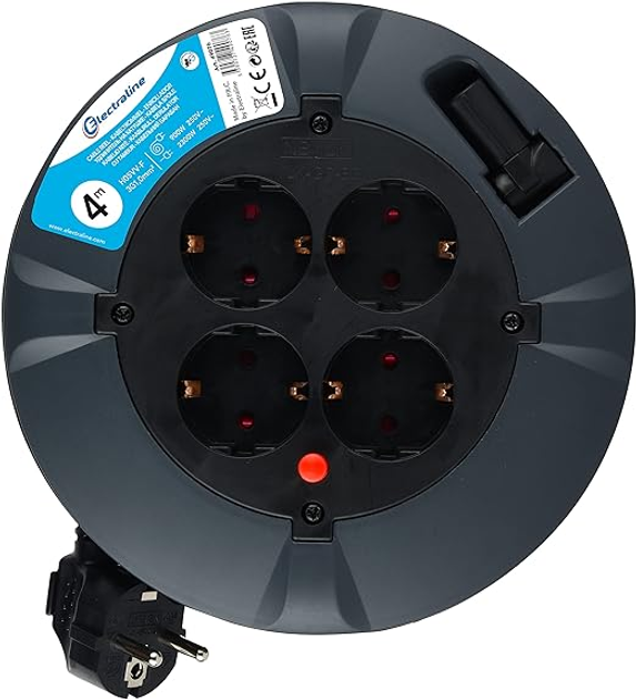 Подовжувач в захисному боксі на котушці Electraline 4 розетки кабель ПВС 3х1 10м чорно-синій (49003)