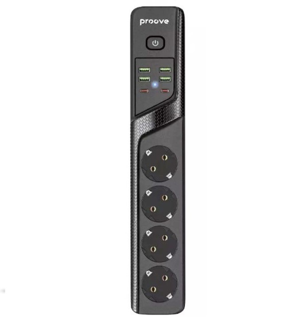 Мережевий фільтр Proove 4 розетки + 4USB/2Type-C 2500W кабель 2м Power Socket P-04 Black (P-04)
