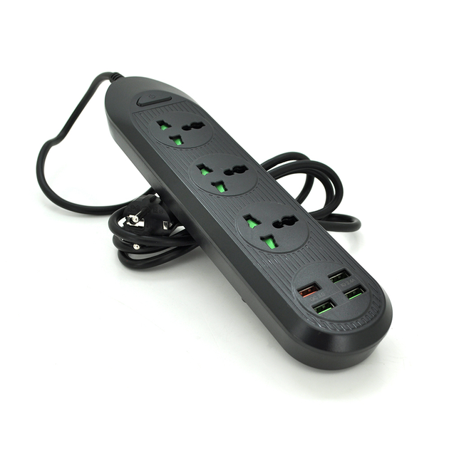 Мережевий фільтр Voltronic 4 розетки 3 USB 3000Вт 2м 3х0,75мм Black