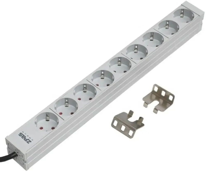 Пристрій розподілу електроживлення ZPAS 19", 1U, блок 9хShuko, без вимикача, вилка Shuko