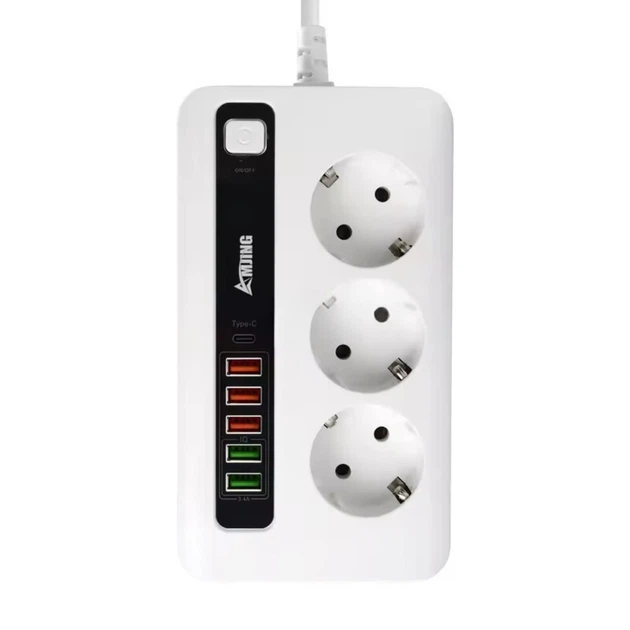 Мережевий фільтр BKL-04 зі швидкою зарядкою на 3 розетки 1 PD20W+ 1 QC3.0+ 3 USB 250V, 10А, чорний