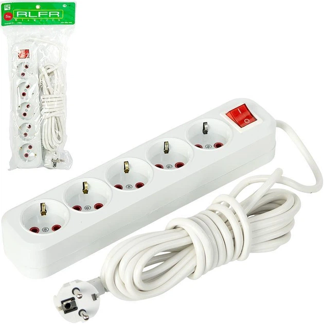 Мережевий подовжувач переноска електрична 5 метрів 5 розеток із заземленням та вимикачем