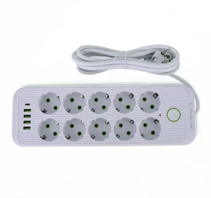 Мережевий фільтр-подовжувач USB 10220В+4USB+1Type-C Білий 5 м