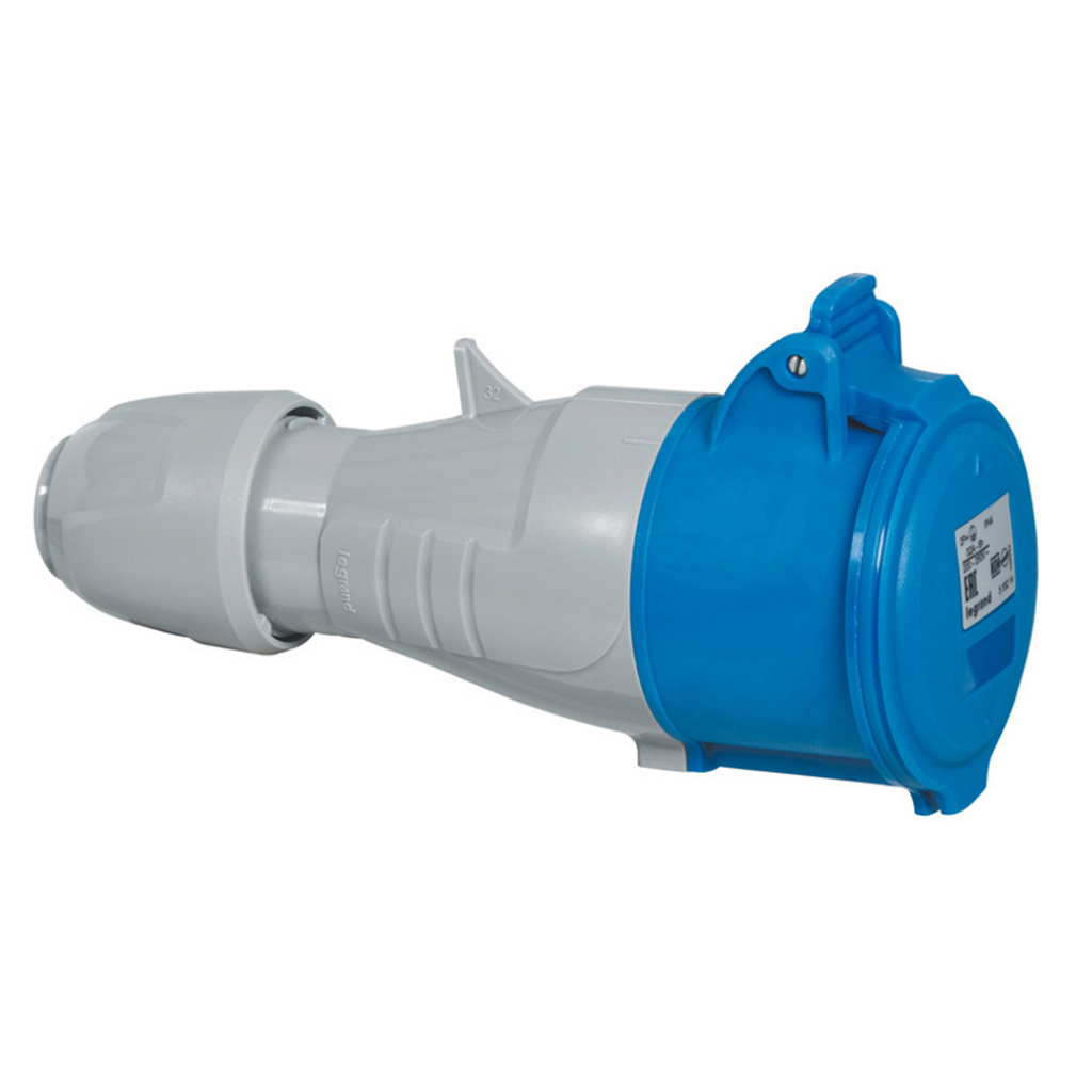 Розетка силова Legrand Tempra Pro 32A 2К+З 230В переносна сіро/синя 555214
