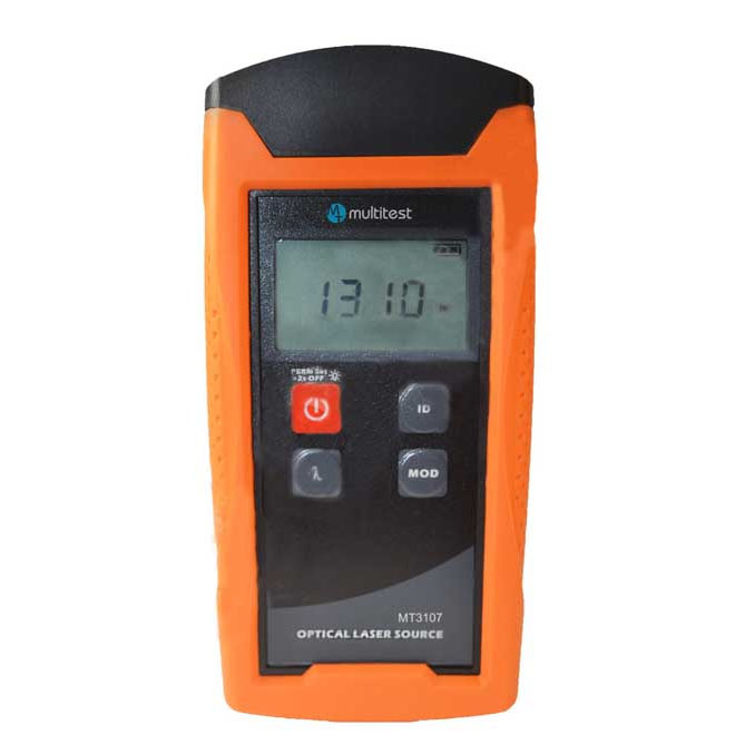 Прилад МТ3107 використовується для подачі оптичного випромінювання у волокно на довжині хвилі 1310 або 1550 нм при тестуванні оптичних ліній, вимірюванні внесених втрат в оптичному волокні та інших пасивних оптичних пристроях. Функція модульованого випромінювання частотою 270 Гц, 1 кГц або 2 кГц, також дозволяє використовувати оптичний випромінювач для ідентифікації окремих волокон в оптичному кросі. Основні особливості: Джерело на дві довжини хвилі 1310 і 1550 нм. Стабільний рівень вихідного випромінювання. Модуляція оптичного випромінювання 270 Гц, 1 кГц, 2 кГц. Зручний чохол для перенесення. Функція автоматичного вимкнення через 10 хв.