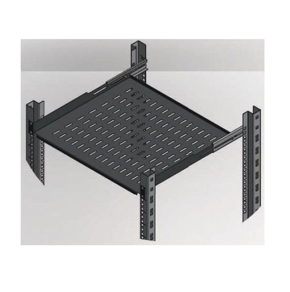 Полку з фіксацією на фронтальні і тильні швелери. З регульованою глибиною фіксації. Перфорована для вентиляції. Здатність навантаження 50 кг.