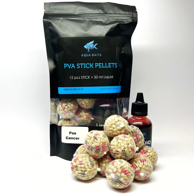 Готові ПВА стіки Aqua baits PVA Stick Pellets 12шт "Річковий Рак" 4 мм + 50 мл ліквіду