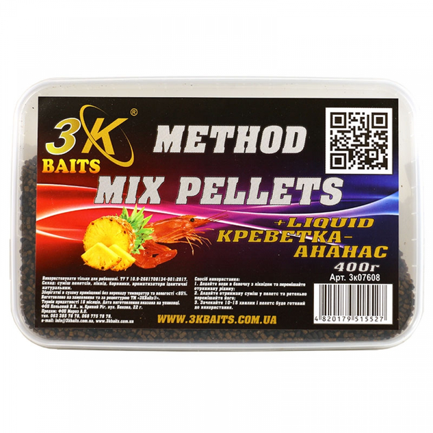Пелетс 3KBaits Method mix Креветка-ананас 400гр (3к07608)