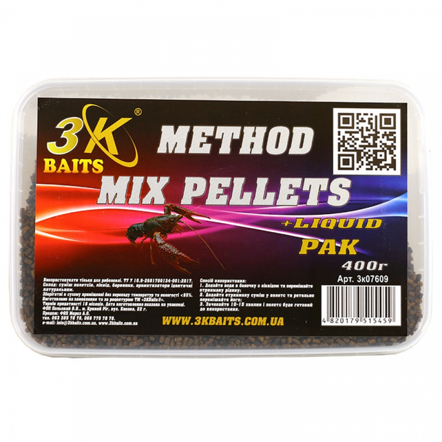 Пелетс 3KBaits Method mix Рак 400гр (3к07609)