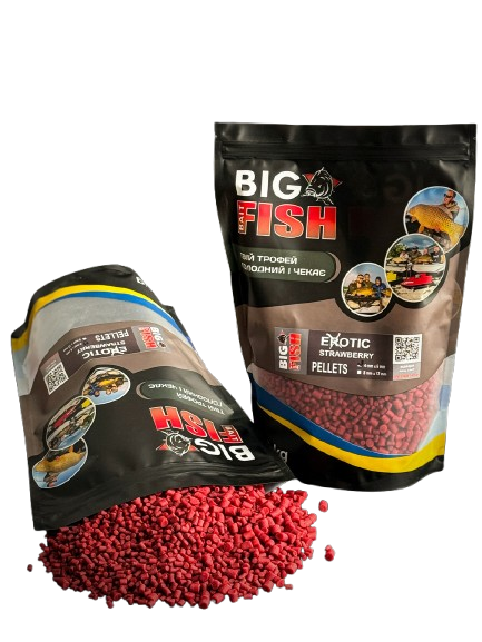 Пеллетс Big Fish Baits Exotic Strawberry (Premium Pellets), 8 мм і 12 мм, 0,9 кг (полуниця), БФБпел026