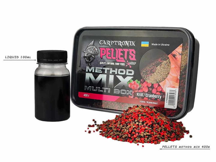 Пелетс Carptronik Multi BOX Метод Мікс + Ліквід (Криль/Журавлина)