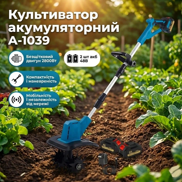 Культиватор акумуляторний A-1039 безщітковий 48В 2800Вт Синій