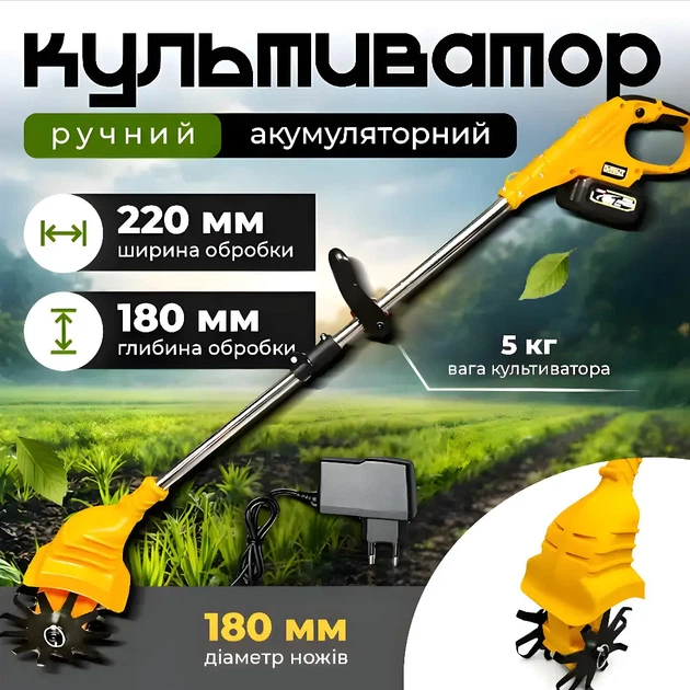 Садовий акумуляторний культиватор DeWalt для городу та саду з двома акумуляторами 48 В та шириною захвату 22 см