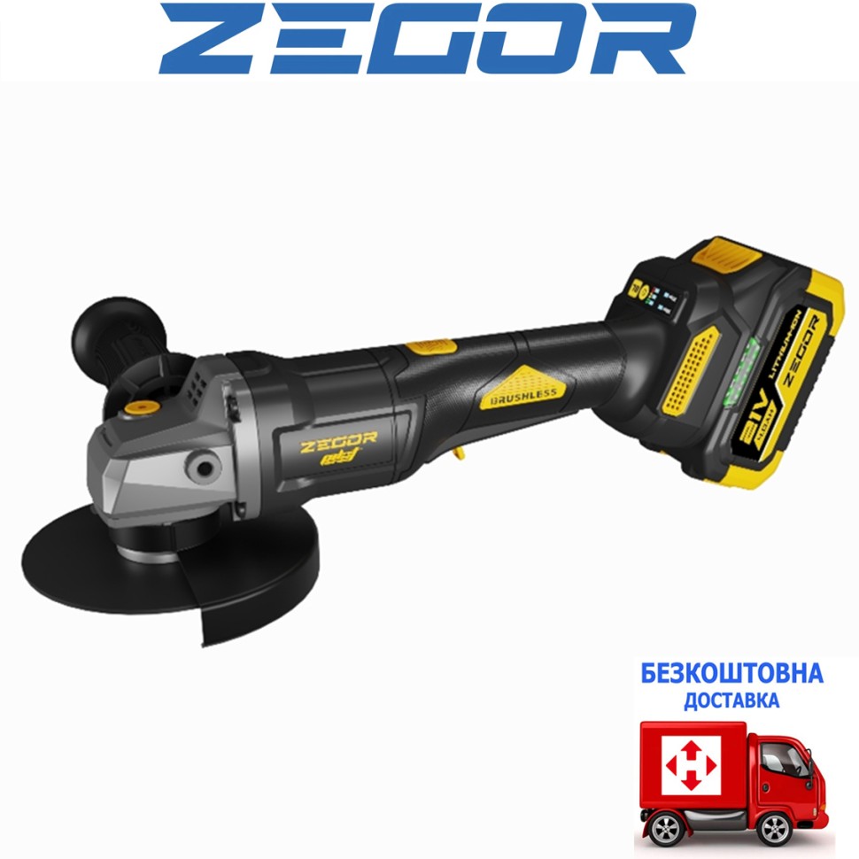 Машина акумуляторна кутова шліфувальна ZEGOR AGTG-21BL-125 1*(21V, 4Ач), безщіткова, у кейсі (Серія Tiger)