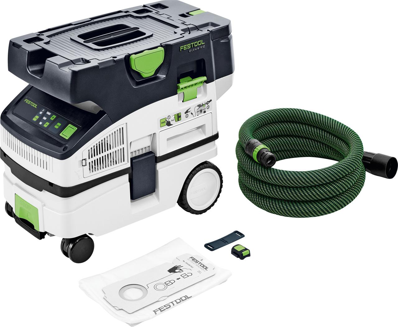 ИКА, л: 10 / 7.5 РОЗМІРИ (Д x Ш x В), мм: 550 x 320 x 455 КЛАС ПИЛУ: L ЧАС РОБОТИ 2 х 5.0 А/год, хвилин: 16 - 30 ВАГА ІНСТРУМЕНТУ БЕЗ ОПОРЯДЖЕННЯ, кг: 10.0 ТИП ПРИВОДУ: АКУМУЛЯТОР ТЕХНОЛОГІЯ: Bluetooth® КОМПЛЕКТ ПОСТАЧАННЯ: з інтегрованою технологією Bluetooth®, пульт дистанційного керування CT-F I, без акумуляторів, без зарядного пристрою, мішок-пилозбірник SELFCLEAN SC-FIS-CT, високоефективний основний фільтр, гладкий всмоктувальний шланг Ø 27/32 x 3.5 м AS/CTR антистатичний. ПАКУВАННЯ: у картонному пакуванні. ОПИС: Акумуляторний пиловидальний апарат CTLC MINI I-Basic Компактна потужність всмоктування без кабелю. Ідеально підходить для бездротових інструментів. Пил, прощавай. Здрастуйте, здоров'я - навіть без розетки. Акумуляторний компактний пиловидальний апарат CTLC MINI любить пил та ідеально підходить для ваших акумуляторних інструментів Festool. Чи то мобільне пиляння, шліфування чи свердління: компактна конструкція та невелика вага роблять його ідеальним помічником для щоденного використання. Таким чином, ви можете працювати без пилу в акумуляторній системі! Інноваційний Bluetooth® Autostart або практичний пульт дистанційного керування забезпечують ідеальну взаємодію між бездротовим інструментом та пиловидальним апаратом. Наш бездротовий пиловидальний апарат має високу потужність всмоктування завдяки турбіні 36 Вт з двома акумуляторними батареями по 18 В. І,