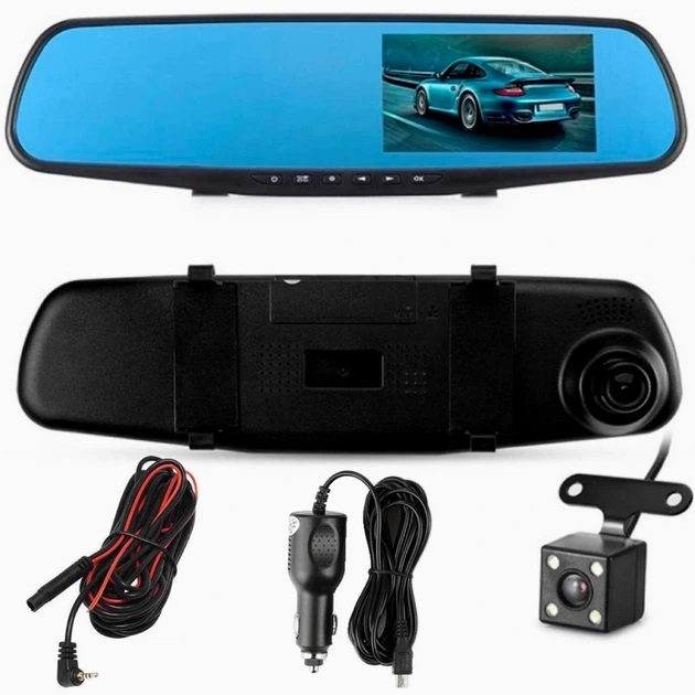 Відеореєстратор дзеркало з двома камерами 1280х720 4.3 дюйми чорний модель 1433