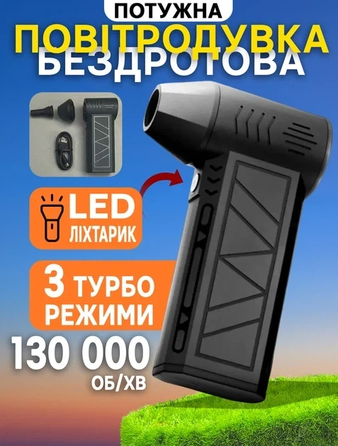 Турбовентилятор Turbo Jet X3 130000 RPM акумуляторний турбінний вентилятор 3000mAh, 52 м